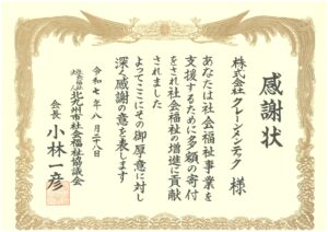 このたび弊社は、北九州市社会福祉協議会が運営する 「子どもの居場所づくり応援基金」 に寄付をいたしました。
